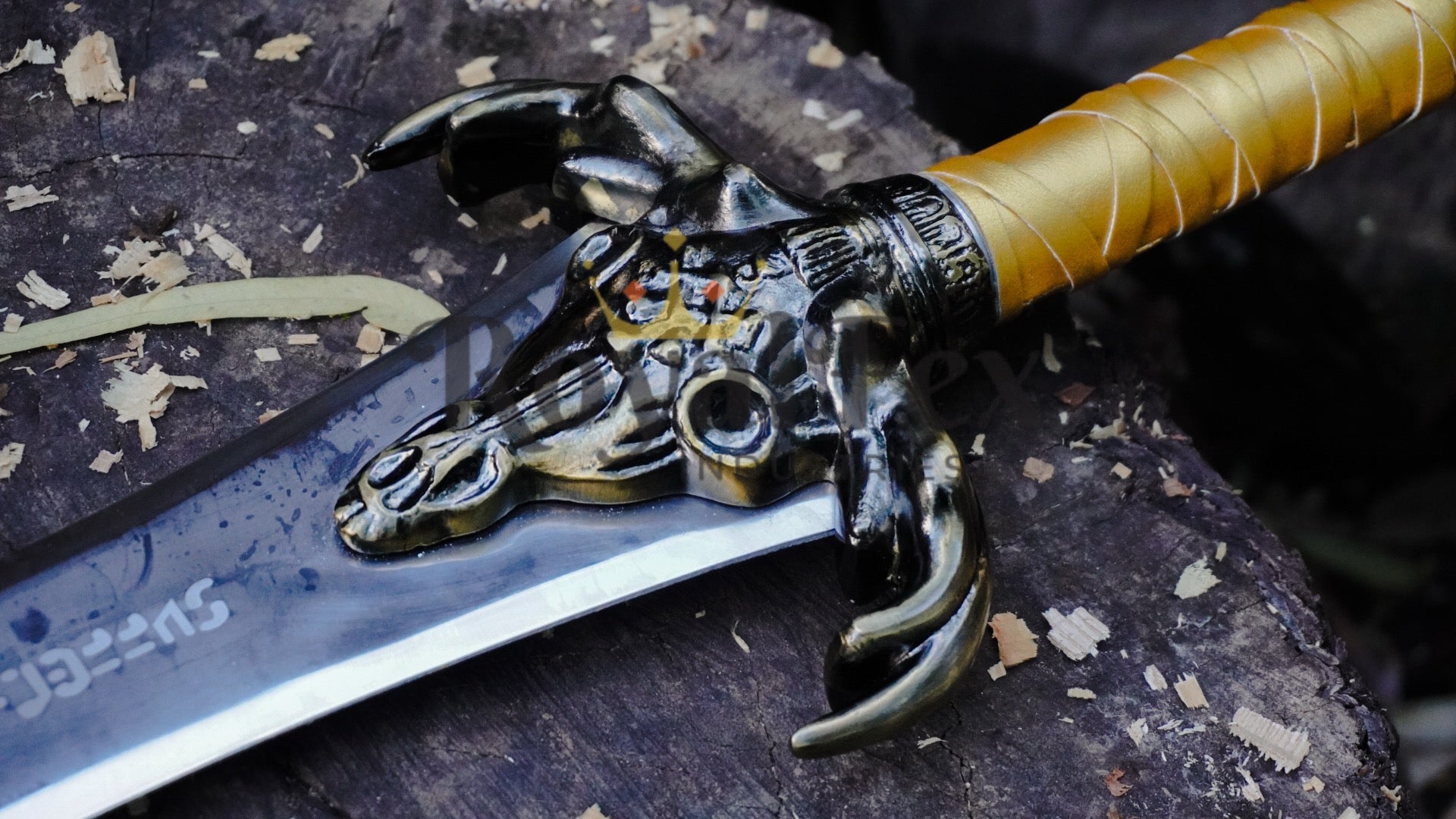 High Carbon Steel Blade: Constructed from 1095 high carbon steel and tempered to 52 HRC for optimal strength.Whether you're a dedicated Conan fan, a collector of fantasy memorabilia, or simply appreciate exceptional craftsmanship, this hand-forged replica sword is a must-have addition to your collection. It's more than just a sword; it's a portal to a world of adventure, where you can channel the spirit of Conan the Barbarian and conquer challenges with unmatched might.Unleash your inner warrior. Order your Conan the Barbarian sword today!the handle for a comfortable grip- Decorated with Cimmerian symbols, paying homage to Conan's birthplace- Intricately designed cross and pommel featuring an Irish elk skull and hoof- Made from high-quality materials for durability and authenticityPERFECT FOR:- Fans of the "Conan the Barbarian" film and fantasy enthusiasts- Collectors of replica swords and historical artifacts- Anyone seeking a unique and conversation-starting piece
