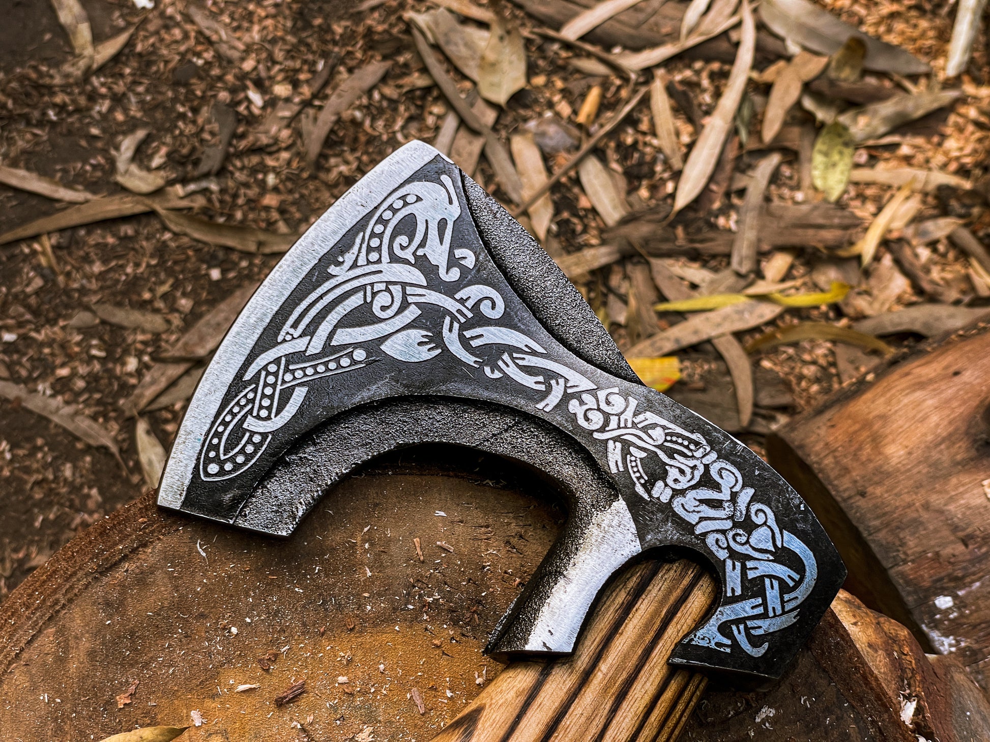 Handmade Viking Axe with Engraved Carbon Steel Blade | Custom Wood Handle | Tactical & Decorative Hatche